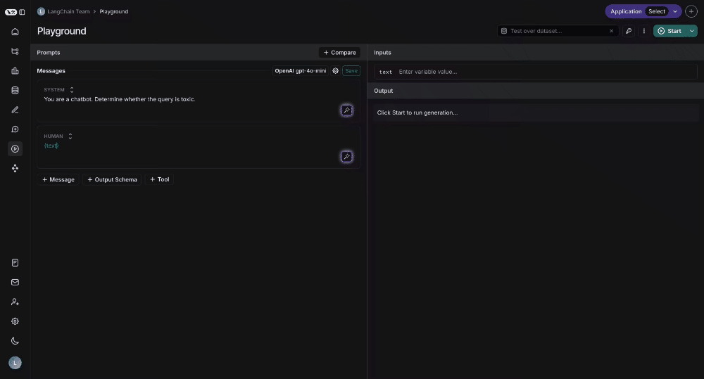 The prompt playground makes the process of iterating and testing your prompts seamless. You can enter the playground from the sidebar or directly from a saved prompt. In the playground you can:- Change the model being used